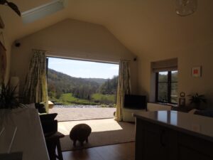 Opening out into the new extension with open plan kitchen, dining and living room with exceptional views from the bi-fold doors over the Cegidog river and Ffrith valley.