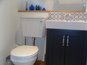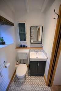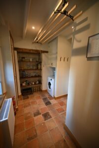 The original house houses the snug with log burner and desk, utility room ( washing machine, microwave and clothes airer) and downstairs shower room.